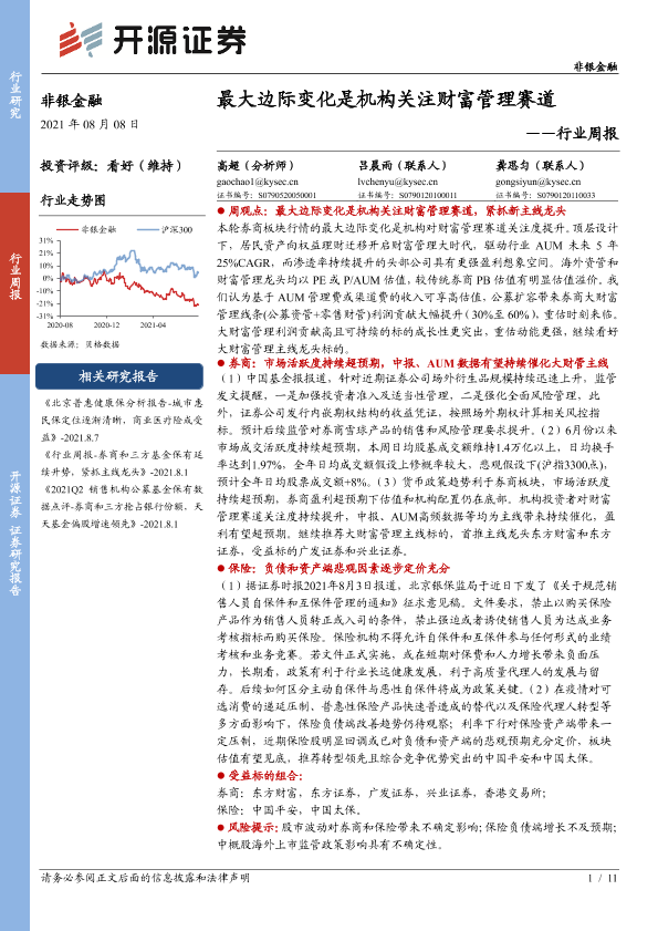 【开源证券】【20210808】非银金融行业周报:最大边际变化是机构关注财富管理赛道-11页