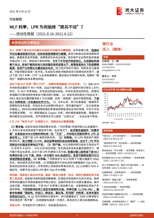 【光大证券】【20210822】MLF利率、LPR为何始终“按兵不动”?-6页