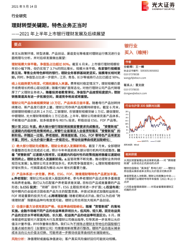 【光大证券】【20210914】2021年上半年上市银行理财发展及后续展望-18页