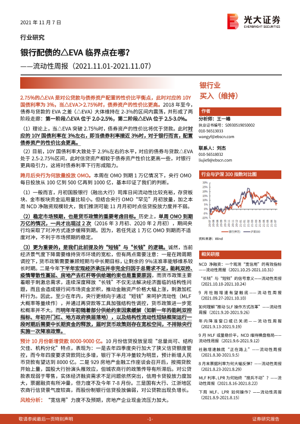 银行流动性 债券配置 EVA 金融市场 货币政策