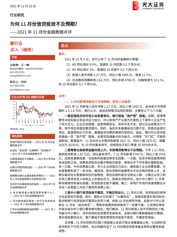 【光大证券】【20211210】银行业2021年11月份金融数据点评:为何11月份信贷投放不及预期?-6页