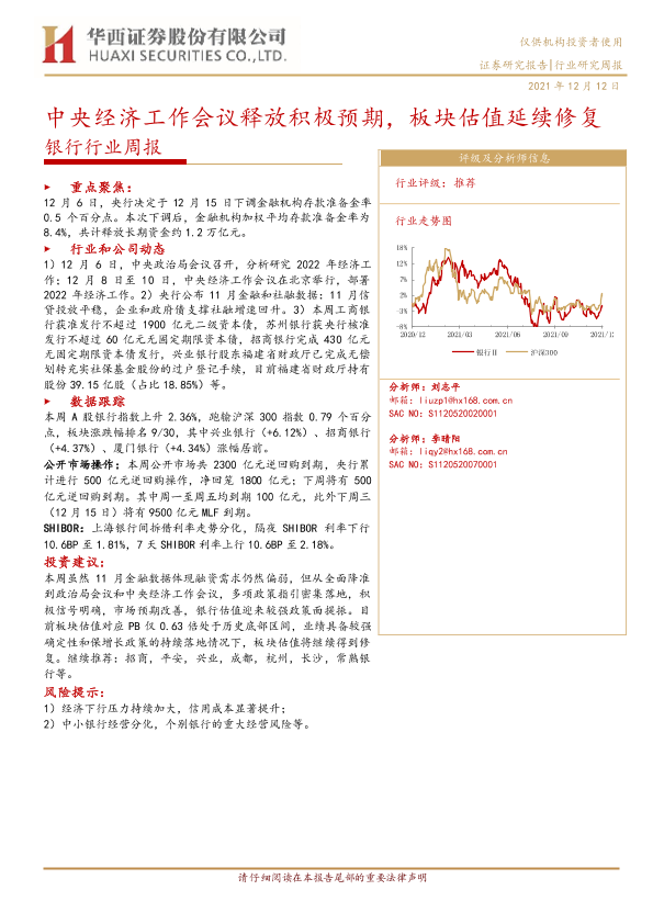 【华西证券】【20211212】银行行业周报:中央经济工作会议释放积极预期,板块估值延续修复-8页