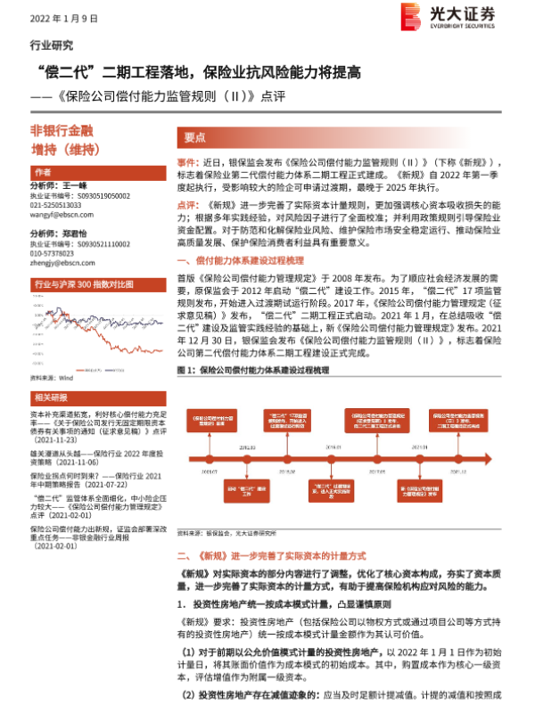 【光大证券】【20220110】保险公司偿付能力监管规则(Ⅱ)点评:偿二代二期工程落地,保险业抗风险能力将提高-6页