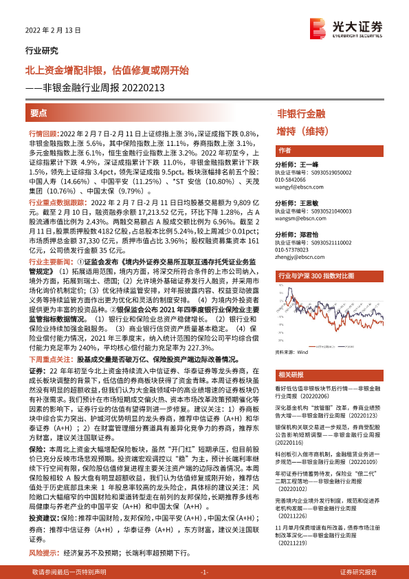 【光大证券】【20220213】非银金融行业周报:北上资金增配非银,估值修复或刚开始-7页