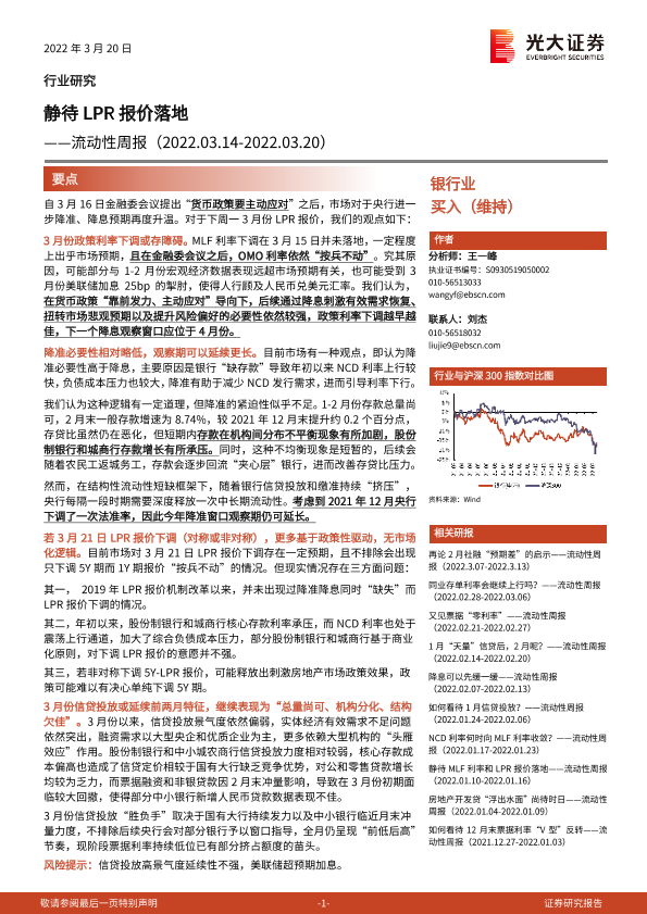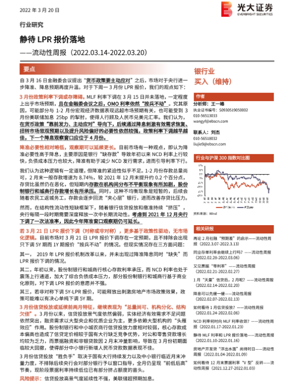 【光大证券】【20220320】银行业流动性周报:静待LPR报价落地-10页