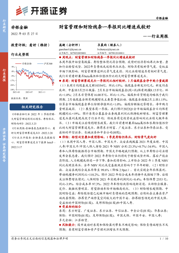 【开源证券】【20220327】非银金融行业周报:财富管理和财险线条一季报同比增速或较好-10页