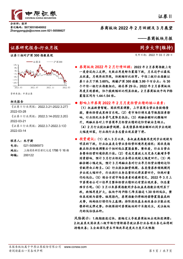 【中原证券】【20220329】券商板块2022年2月回顾及3月展望-7页