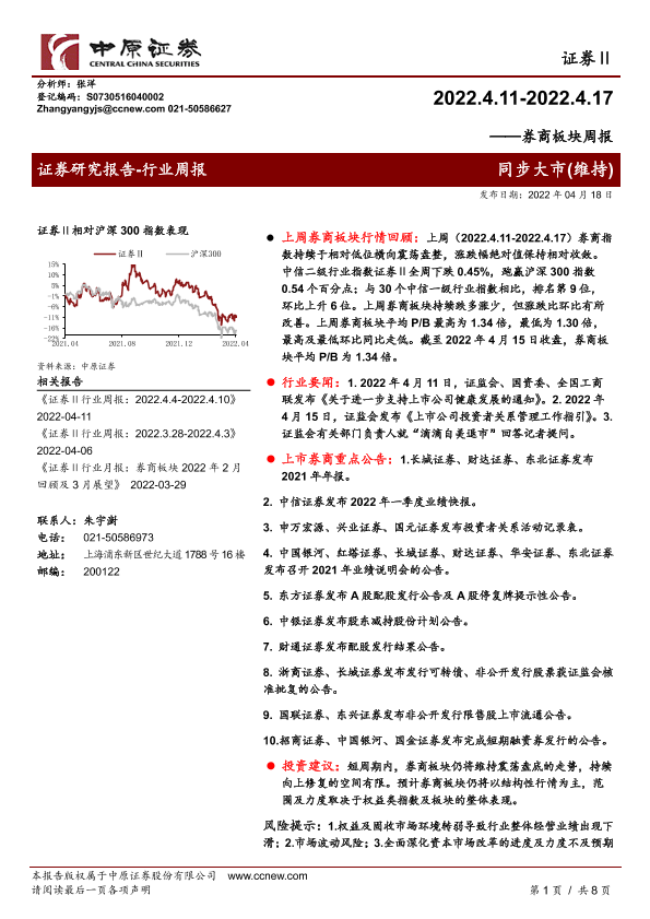 【中原证券】【20220418】券商板块周报-8页