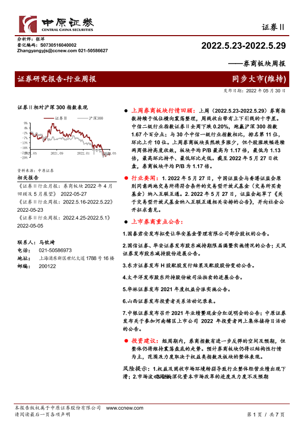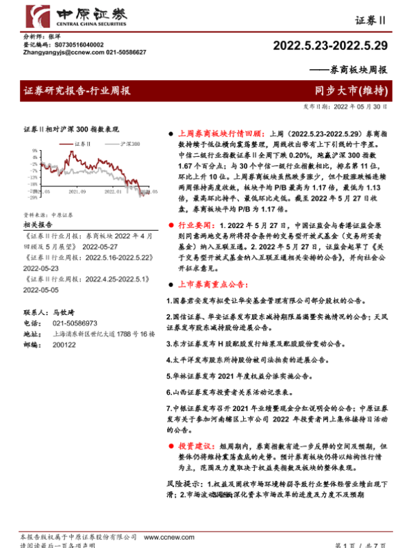 【中原证券】【20220530】券商板块周报-7页