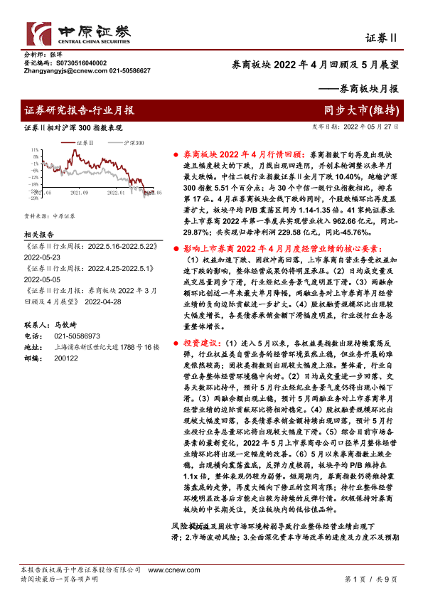 【中原证券】【20220527】券商板块2022年4月回顾及5月展望-9页