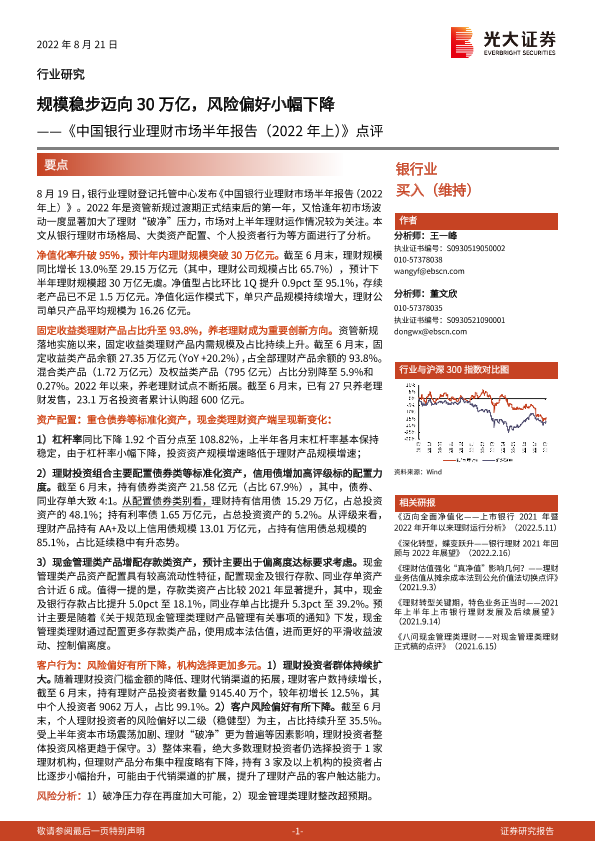 【光大证券】【20220821】中国银行业理财市场半年报告(2022年上)点评-9页