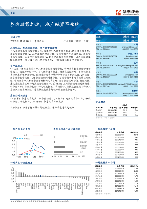 【华泰证券】【20221120】金融行业周报(第四十六周):养老政策加速,地产融资再松绑-28页