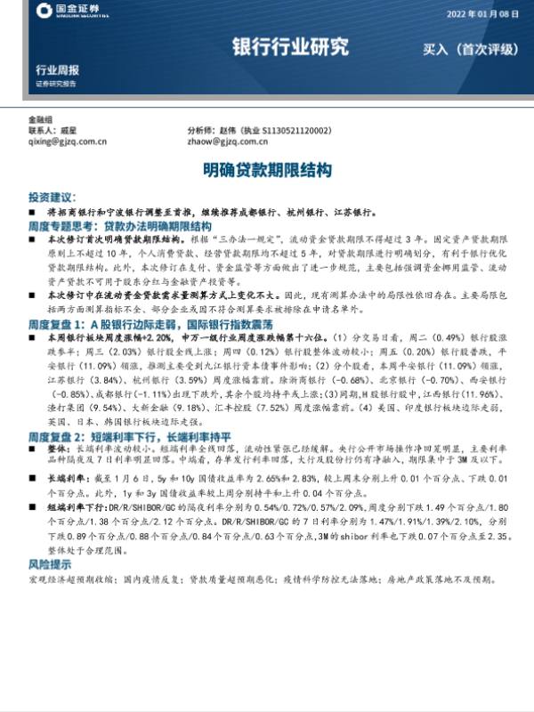 贷款期限结构 银行行业 股市表现 金融监管 利率分析