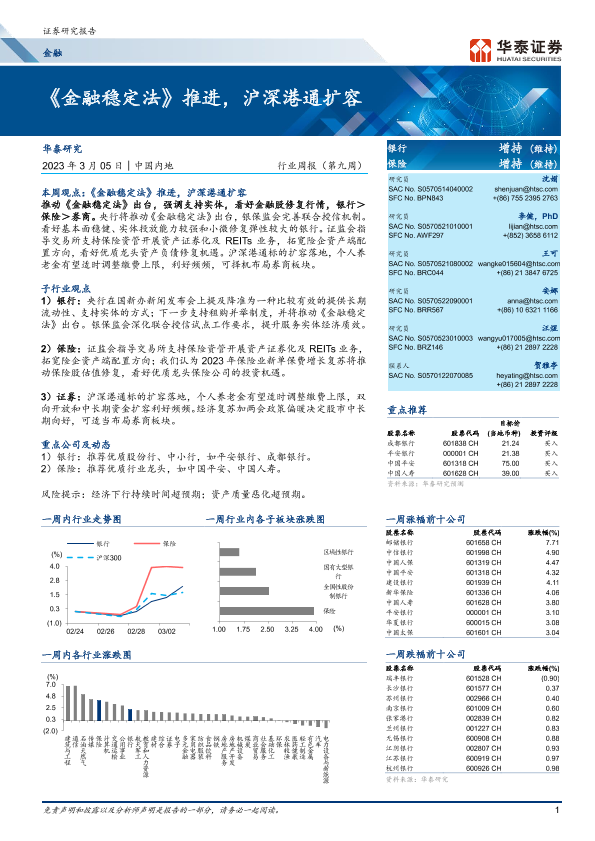 【华泰证券】【20230305】金融行业周报:《金融稳定法》推进,沪深港通扩容-26页