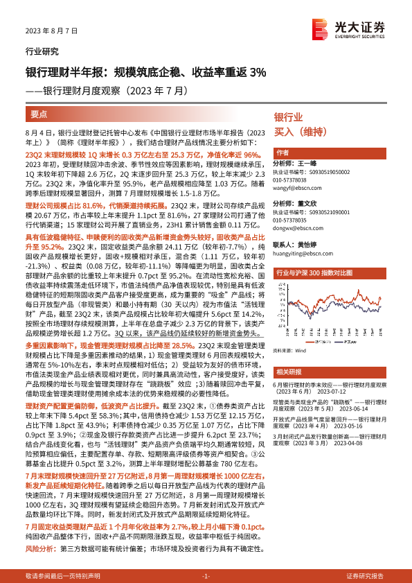 【光大证券】【20230807】银行理财半年报:规模筑底企稳、收益率重返3%-19页