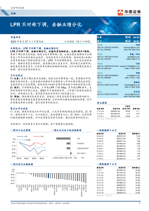 【华泰证券】【20230827】LPR不对称下调,金融业绩分化-31页