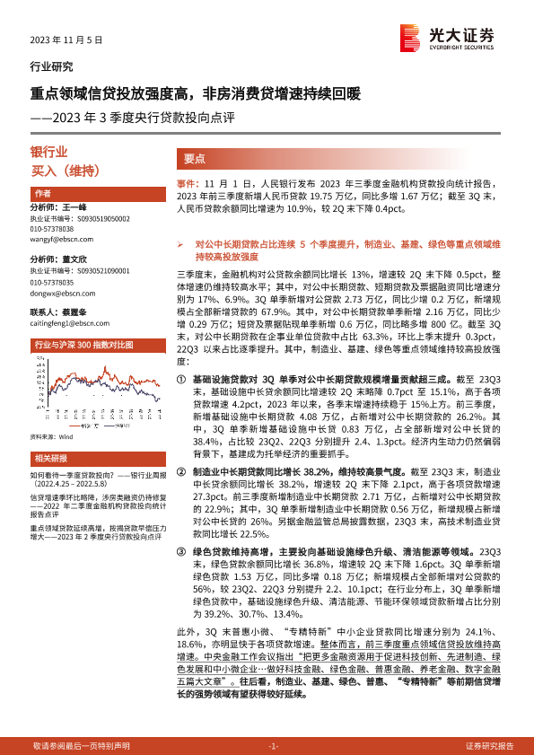 【光大证券】【20231105】重点领域信贷投放强度高,非房消费贷增速持续回暖-12页