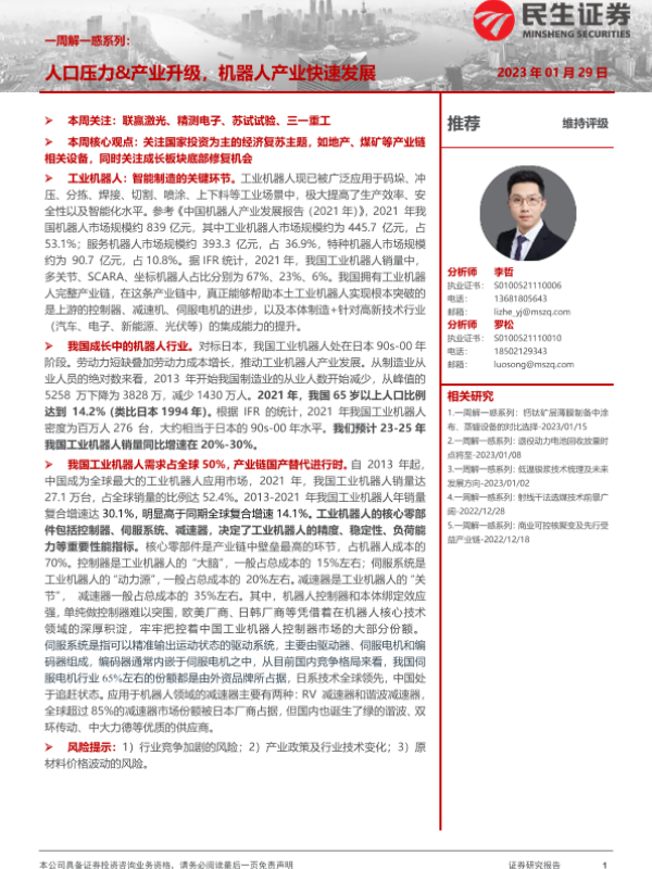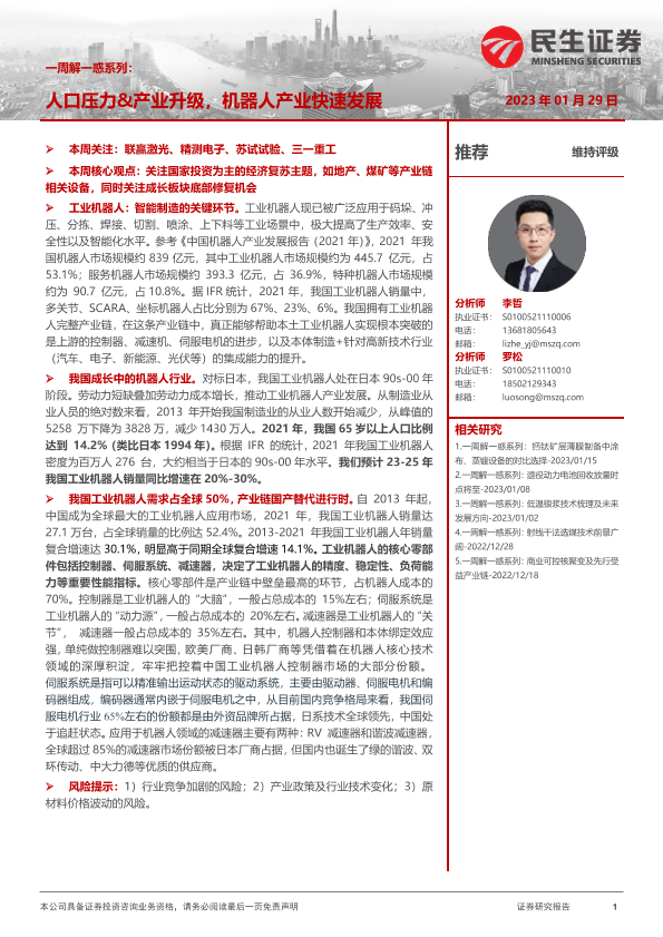 【民生证券】【20230129】机械一周解一惑系列:人口压力&产业升级,机器人产业快速发展-26页