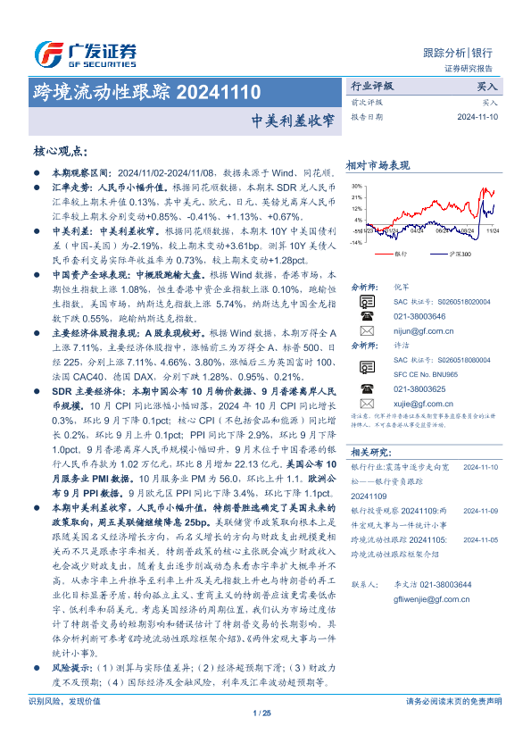 【广发证券】【20241110】银行跨境流动性跟踪:中美利差收窄-25页