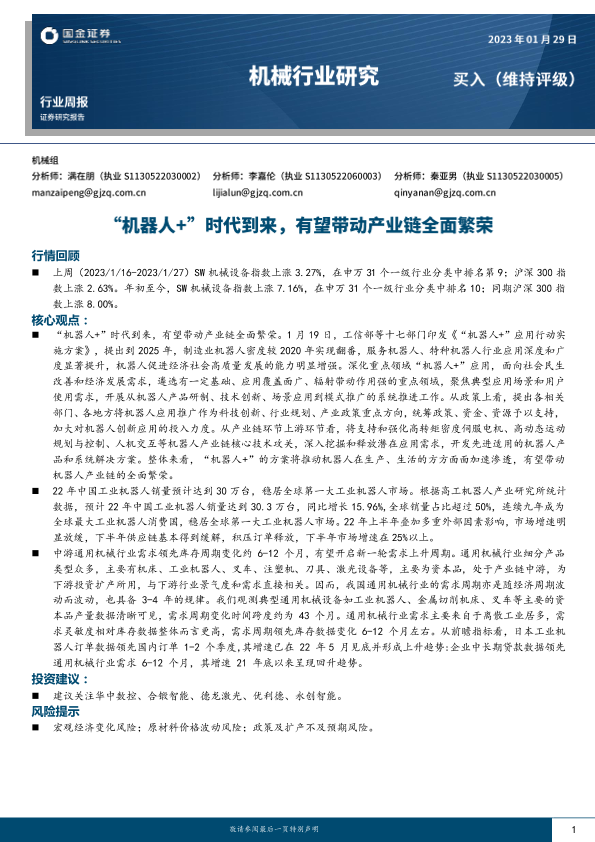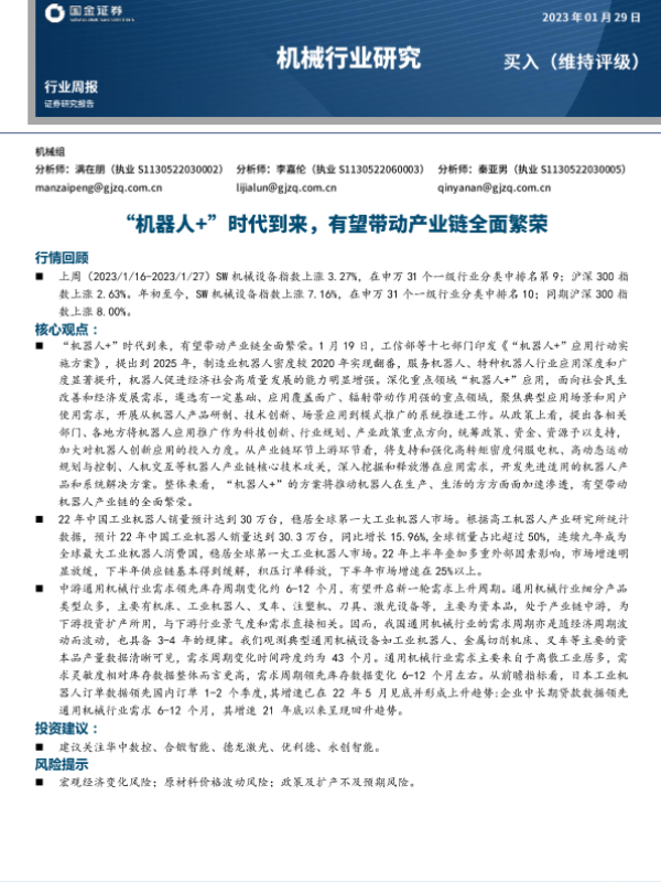 【国金证券】【20230129】机械行业研究:“机器人+”时代到来,有望带动产业链全面繁荣-17页