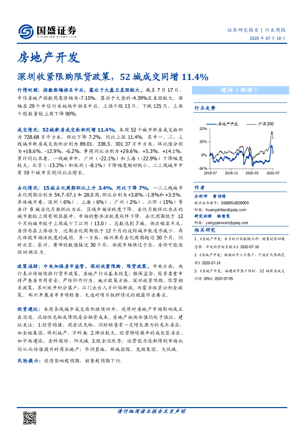 【国盛证券】【20200718】深圳收紧限购限贷政策,52城成交同增11.4%-14页