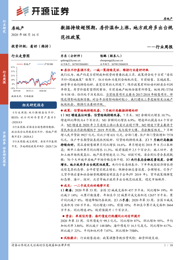 【开源证券】【20200816】房地产行业周报:数据持续超预期,房价温和上涨,地方政府多出台规范性政策-18页