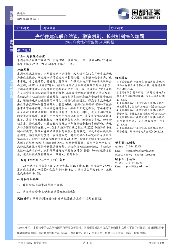 【国都证券】【20200824】2020年房地产行业第34周周报:央行住建部联合约谈,融资机制,长效机制深入加固-9页