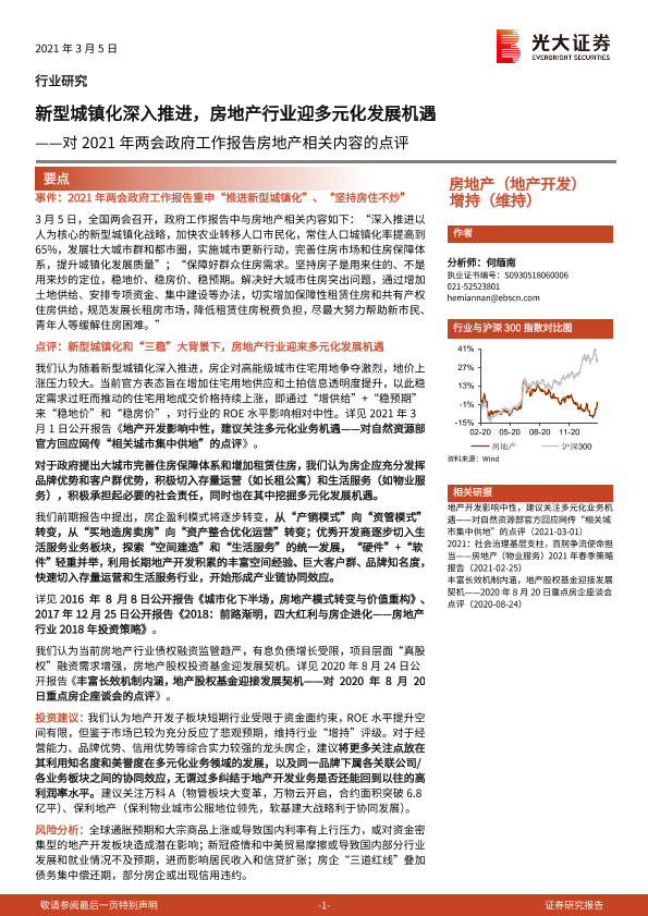 【光大证券】【20210305】对2021年两会政府工作报告房地产相关内容的点评:新型城镇化深入推进,房地产行业迎多元化发展机遇-2页
