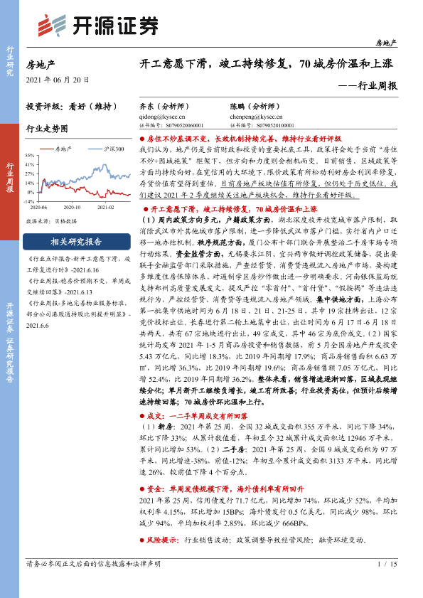 【开源证券】【20210620】开工意愿下滑,竣工持续修复,70城房价温和上涨-15页