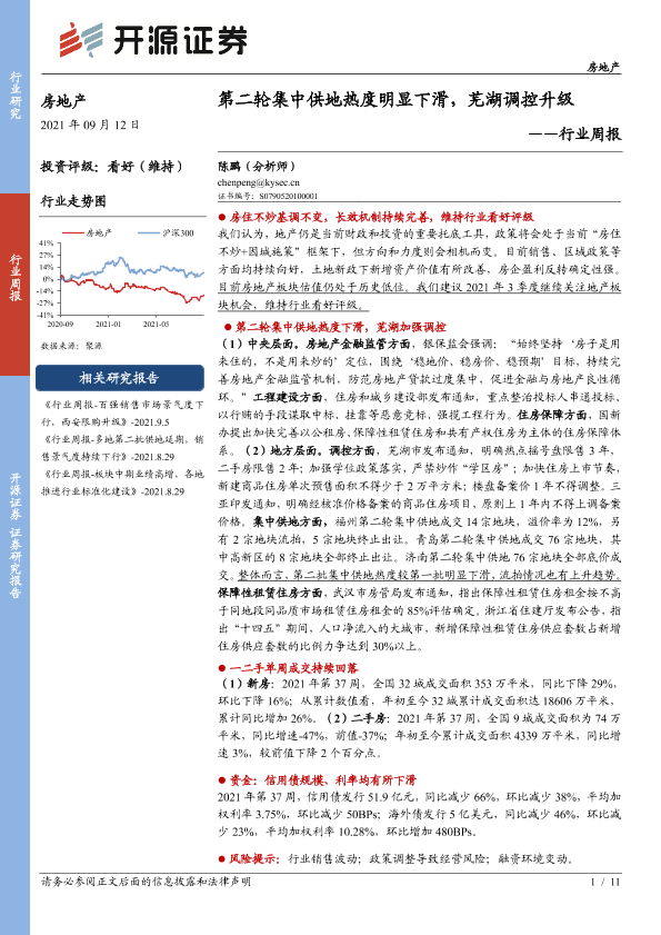 【开源证券】【20210912】第二轮集中供地热度明显下滑,芜湖调控升级-11页