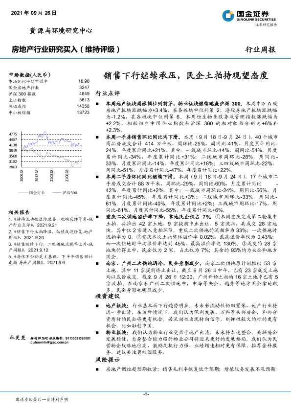【国金证券】【20210926】房地产行业研究周报:销售下行继续承压,民企土拍持观望态度-16页