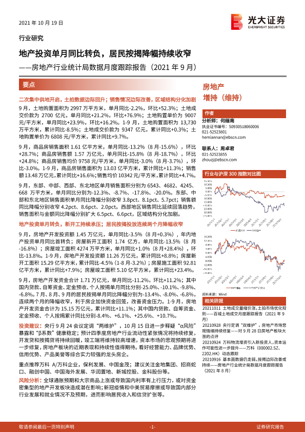【光大证券】【20211019】地产投资单月同比转负,居民按揭降幅持续收窄-11页