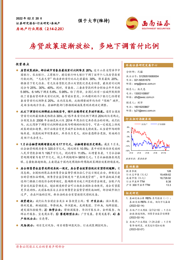 【西南证券】【20220220】房地产行业周报:房贷政策逐渐放松,多地下调首付比例-14页