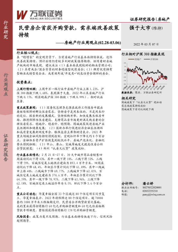 【万联证券】【20220307】民营房企首获并购贷款,需求端改善政策持续-15页