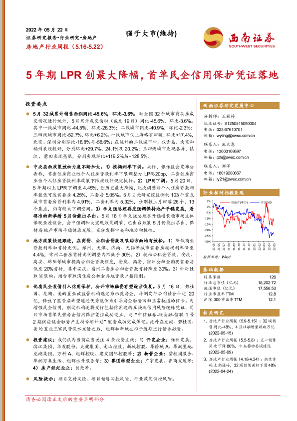 【西南证券】【20220522】房地产行业周报:5年期LPR创最大降幅,首单民企信用保护凭证落地-15页