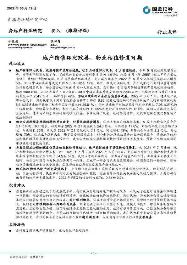 【国金证券】【20220612】地产销售环比改善,物业估值修复可期-9页