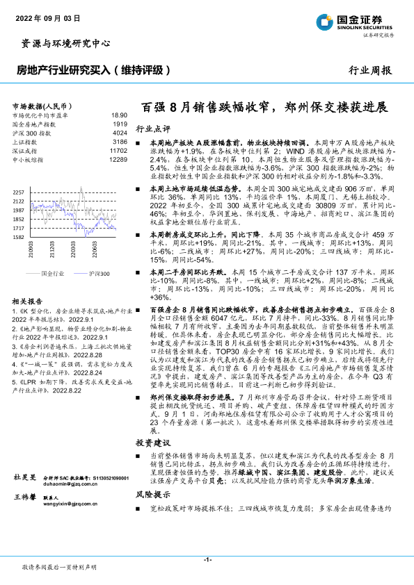 【国金证券】【20220903】百强8月销售跌幅收窄,郑州保交楼获进展-21页