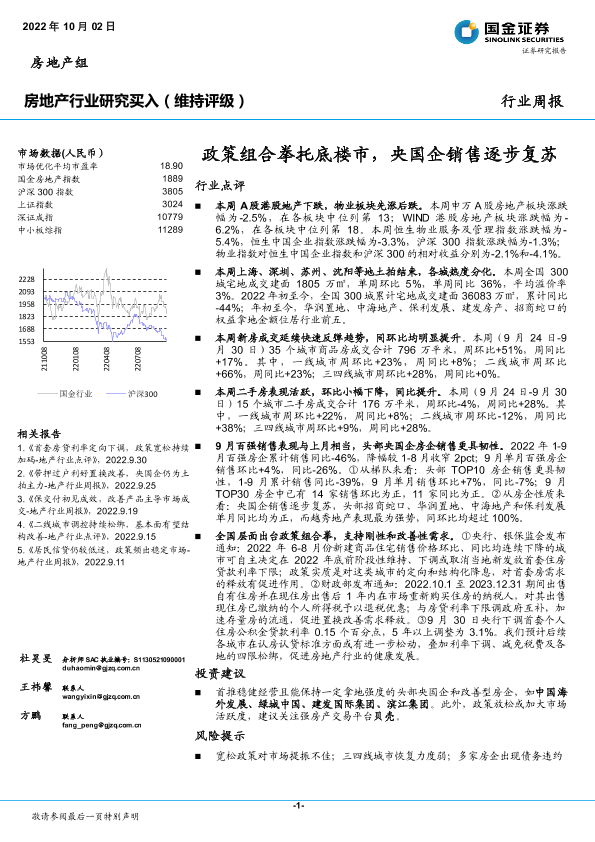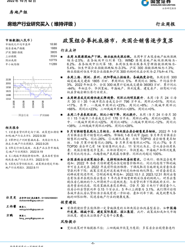 【国金证券】【20221002】房地产行业周报:政策组合拳托底楼市,央国企销售逐步复苏-19页