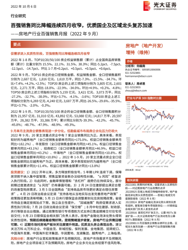 【光大证券】【20221006】房地产行业百强销售月报-10页