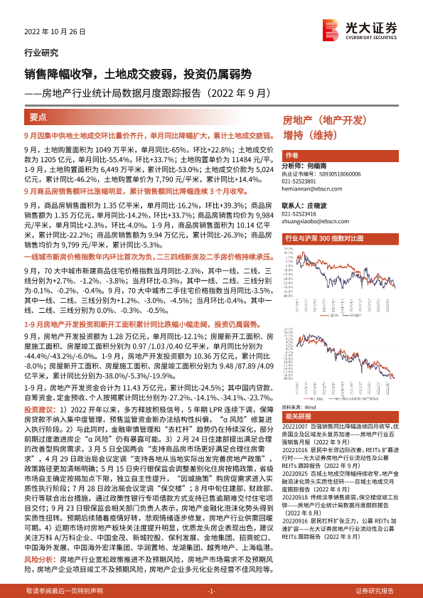 【光大证券】【20221026】房地产行业统计局数据月度跟踪报告-12页