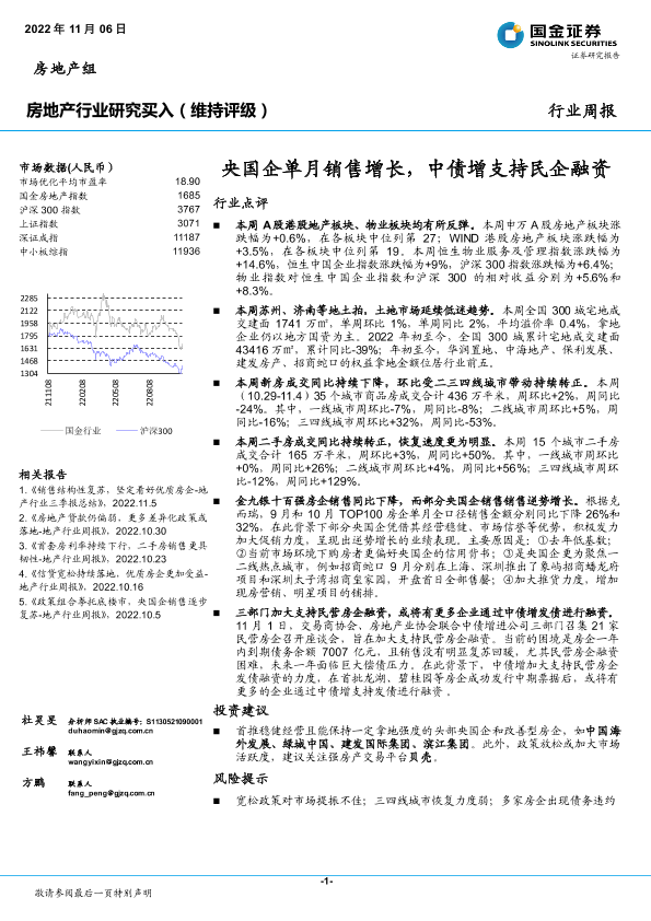 【国金证券】【20221106】房地产行业研究:央国企单月销售增长,中债增支持民企融资-19页