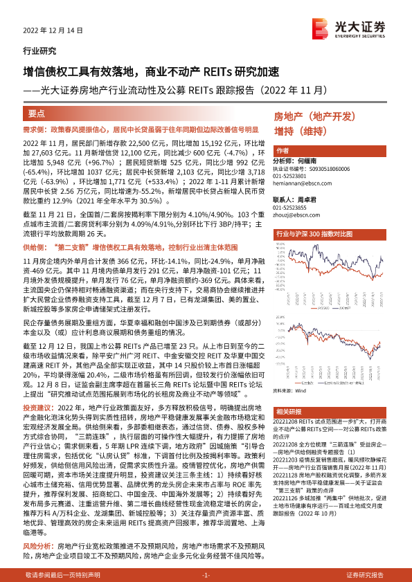 【光大证券】【20221214】房地产行业流动性及公募REITs跟踪报告-19页