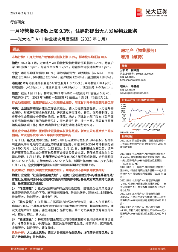【光大证券】【20230202】一月物管板块指数上涨9.3%,住建部提出大力发展物业服务-11页
