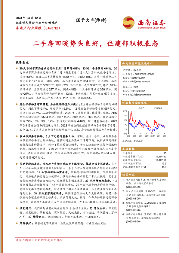 【西南证券】【20230312】房地产行业周报:二手房回暖势头良好,住建部积极表态-14页