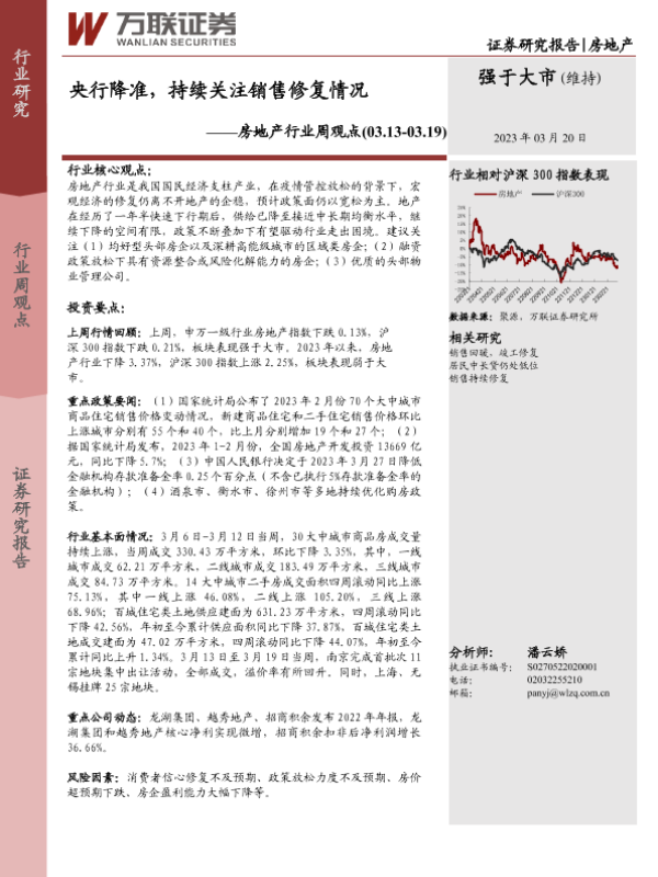 【万联证券】【20230320】央行降准,持续关注销售修复情况-17页