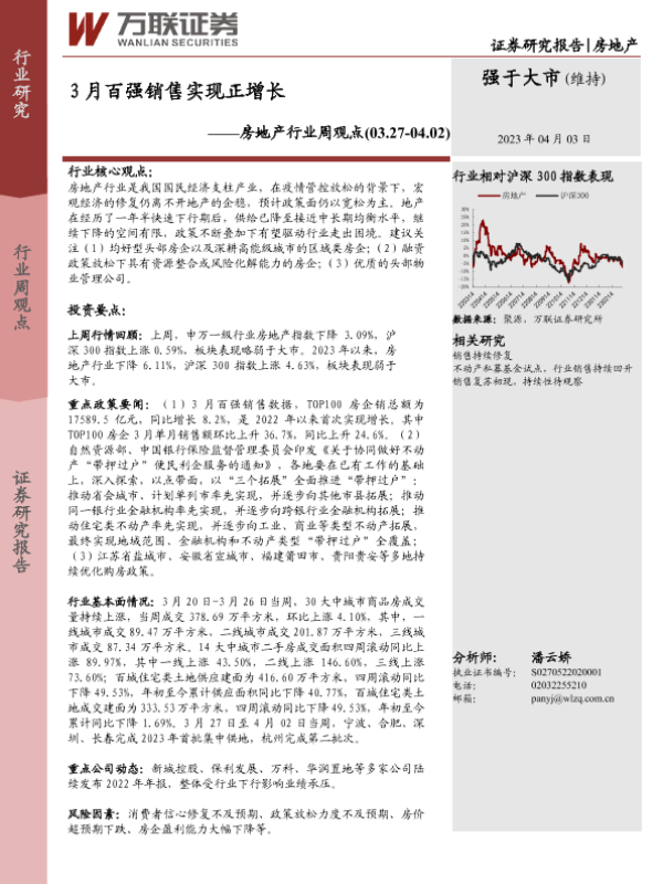 【万联证券】【20230403】3月百强销售实现正增长-16页