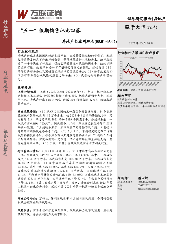 【万联证券】【20230508】“五一”假期销售环比回落-15页