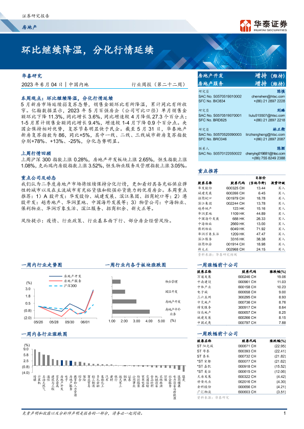 【华泰证券】【20230604】房地产行业周报(第二十二周):环比继续降温,分化行情延续-15页