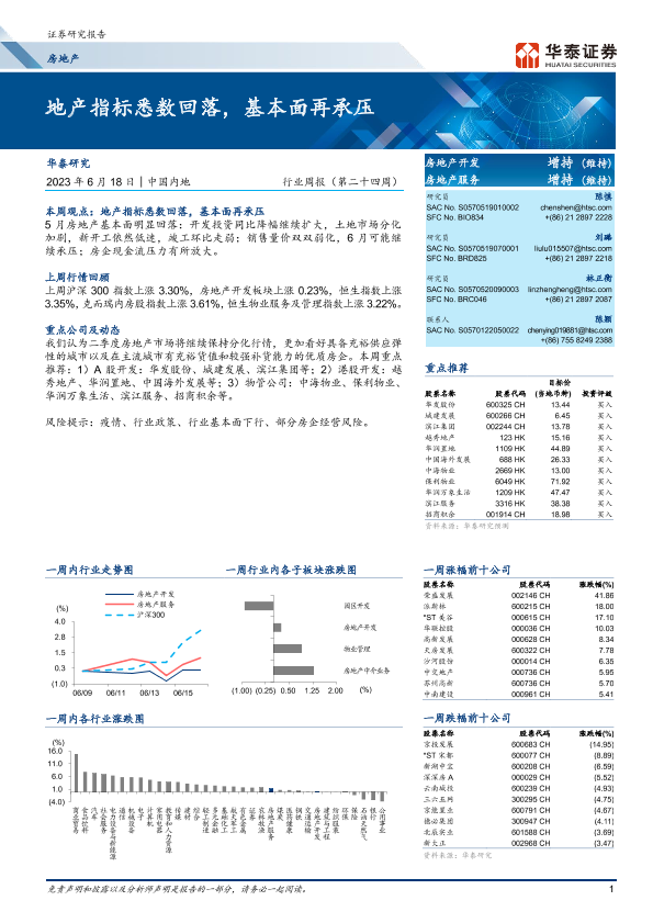 【华泰证券】【20230618】房地产行业周报:地产指标悉数回落,基本面再承压-14页