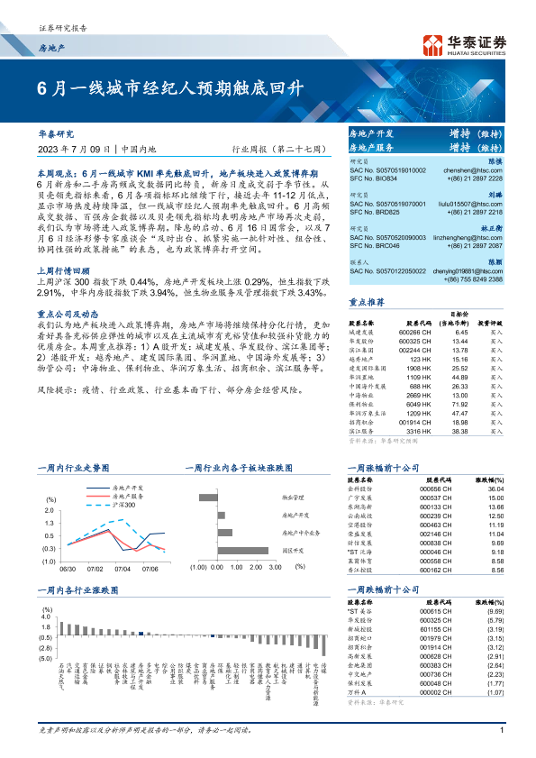 【华泰证券】【20230709】6月一线城市经纪人预期触底回升-14页
